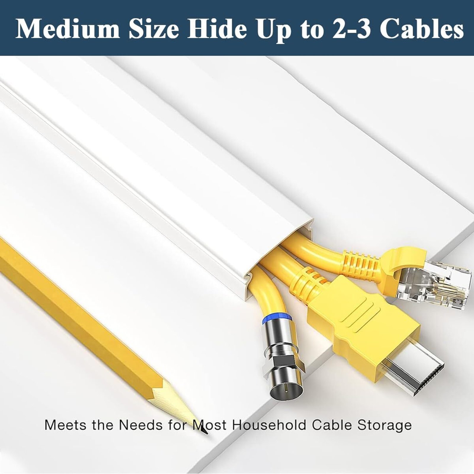 SET OF 3 CONNECTABLE CABLE HIDER: The cable hider set includes 3 pieces, each measuring 15.7×1.18×0.6 inches . Designed for seamless integration, these cable hider can be easily connected to cover a longer distance. This feature ensures a tidy, continuous line of concealed cables, ideal for extensive cable management in larger spaces. CORNER CONNECTOR INCLUSION: The inclusion of corner connectors enhances its versatility and utility. These connectors provides the smooth routing of cables around various angles and edges. Perfect for navigating tricky room layouts, they ensures that cables remain hidden without compromising on organization or aesthetics. PREMIUM PVC CONSTRUCTION: Crafted from high-quality and durable PVC, the Cable Hider offers longevity and robustness. This material is not only sturdy but also resistant to wear and tear, ensuring that the cable hider maintains its neat appearance and effectiveness over time. SLIDING CABLE HOLDER DESIGN: The built-in sliding cable holder is specifically designed for single cables, making cable management straightforward and efficient. Its unique design allows for easy insertion and removal of cables without any hassle, providing a hassle free installation and allowing for an maintaining free and clutter-free spaces. VERSATILE APPLICATION: The cable hider set is suitable for a variety of applications, including ground cables and background cables. This versatility makes it an invaluable tool for both residential and commercial settings. Whether you need to hide cables in your living room or office, this product ensures a clean and professional appearance.