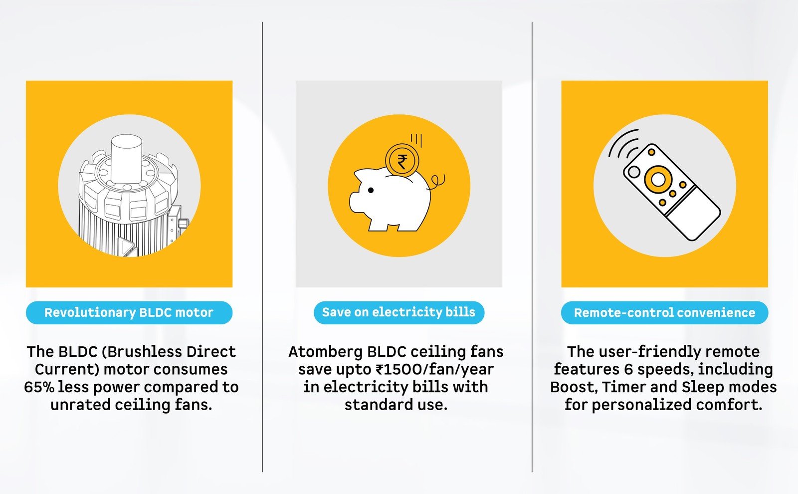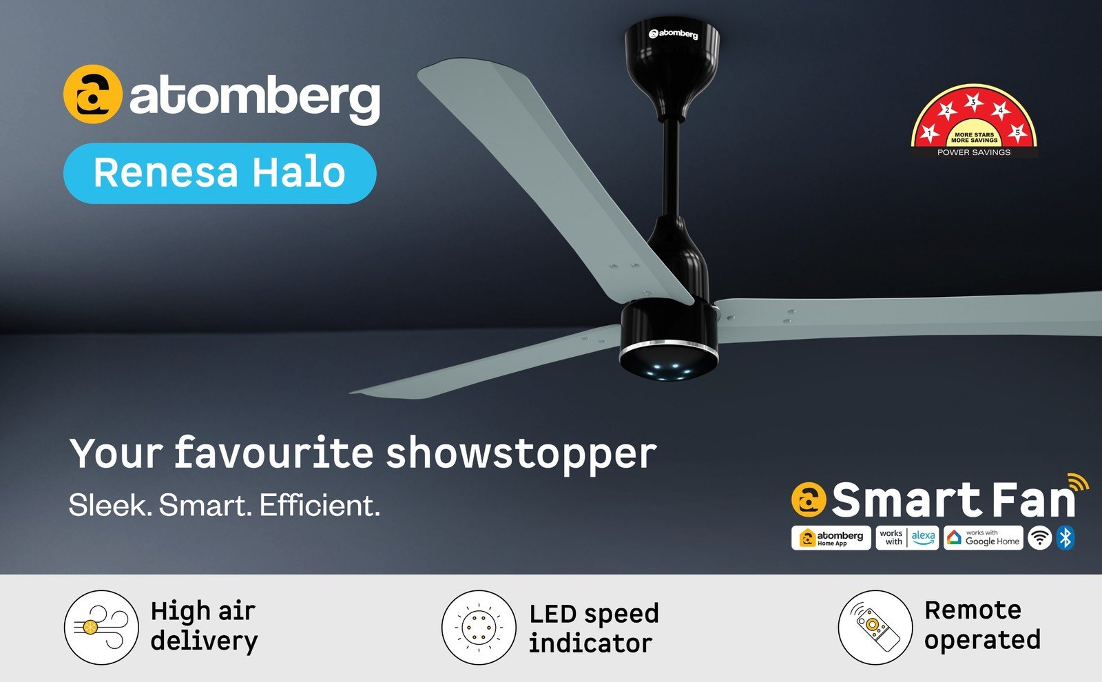 Atomberg Renesa Halo 1200 mm BLDC Ceiling Fan with Remote Control & LED Indicators | Midnight Black
